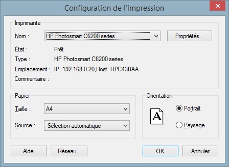 Vous avez la possibilité dans le logiciel Insitu de sélectionner l'imprimante qui éditera vos documents ainsi que la mise en page de ces derniers.