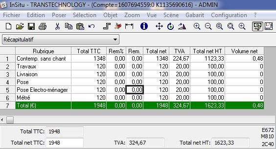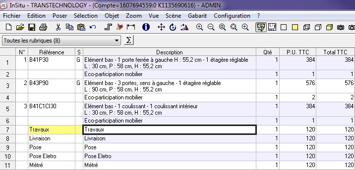 Tableaux de chiffrage par rubriques Dans Insitu chaque articles que vous posez est affiliés à une Rubrique. Voici la liste des rubriques possibles