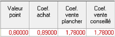 Par exemple : si vous avez 11% de remise fabricant, le Coef. achat doit être de : 0,89