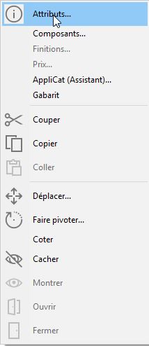 o Description : description détaillée de l'objet qui peut être modifiée si l'autorisation a été donnée dans la boîte de dialogue Configuration | Chiffrage | Options. o Rubrique : tableau du chiffrage auquel appartient l'objet. o Marqué : spécifie si l'objet doit posséder une étiquette avec un numéro ou une référence (en vue de dessus et en élévation). o Facturé : si l'on décoche cette case, l'objet ne figurera pas dans le chiffrage bien qu'il possède un prix. Cela permet d'utiliser un objet d'un catalogue d'objets facturables dans un but purement décoratif. o Détails : spécifie si les détails graphiques de l'objet doivent être représentés ; par exemple, les pieds pour un meuble. o A commander : si l'on décoche cette case, l'objet sera présent dans le chiffrage mais dans aucun bon de commande fournisseur lors de la génération de ceux-ci. Cela peut se justifier si l'on dispose de l'objet en stock. Grâce à la fenêtre des attributs, vous avez donc la possibilité de modifier la largeur, la profondeur, la hauteur d’un objet ainsi que l’allège d’une Fenêtre en changeant la valeur en millimètres dans la case Altitude de pose, sur ou sous .