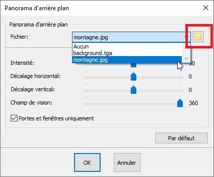 3.Une nouvelle fenêtre s'ouvre , cliquer sur l’icône en forme de dossier jaune, puis sélectionner l’image à insérer a votre panorama d’arrière-plan.