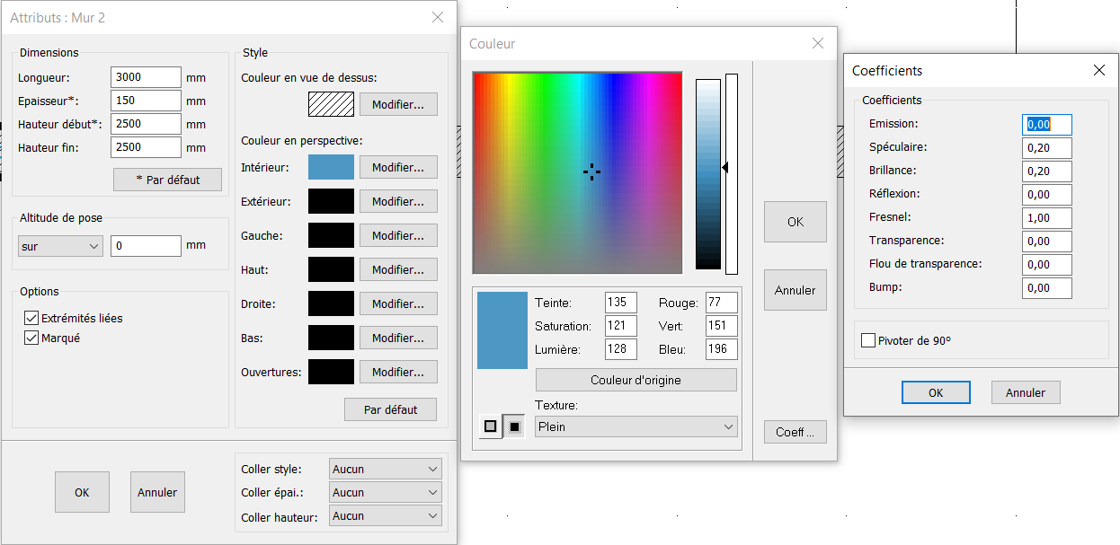 La couleur d'un mur en perspective est un attribut. Voyons comment il est possible de modifier la couleur de l'objet de référence et comment l'appliquer à d'autres objets.