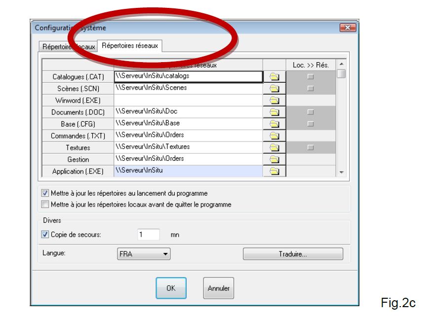 Les informations qui sont renseignées ici (Fig.2c) vous donnent un exemple de répertoires réseaux que vous pourriez indiquer.